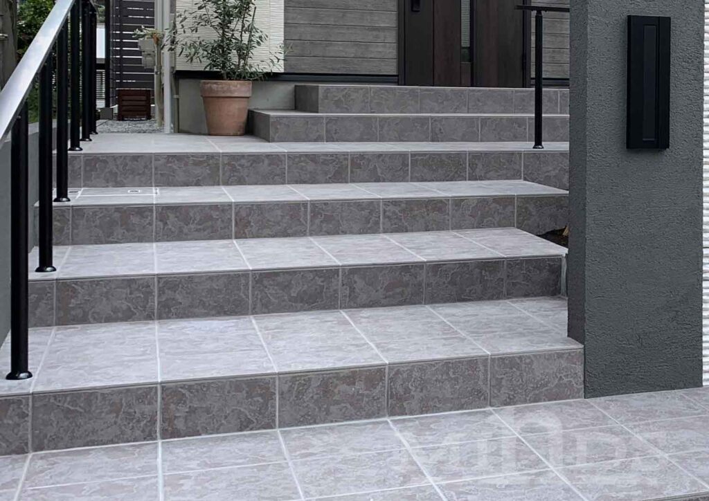 アプローチ階段はゆったりとしたつくりに手摺りもあり、将来的にも安心です。