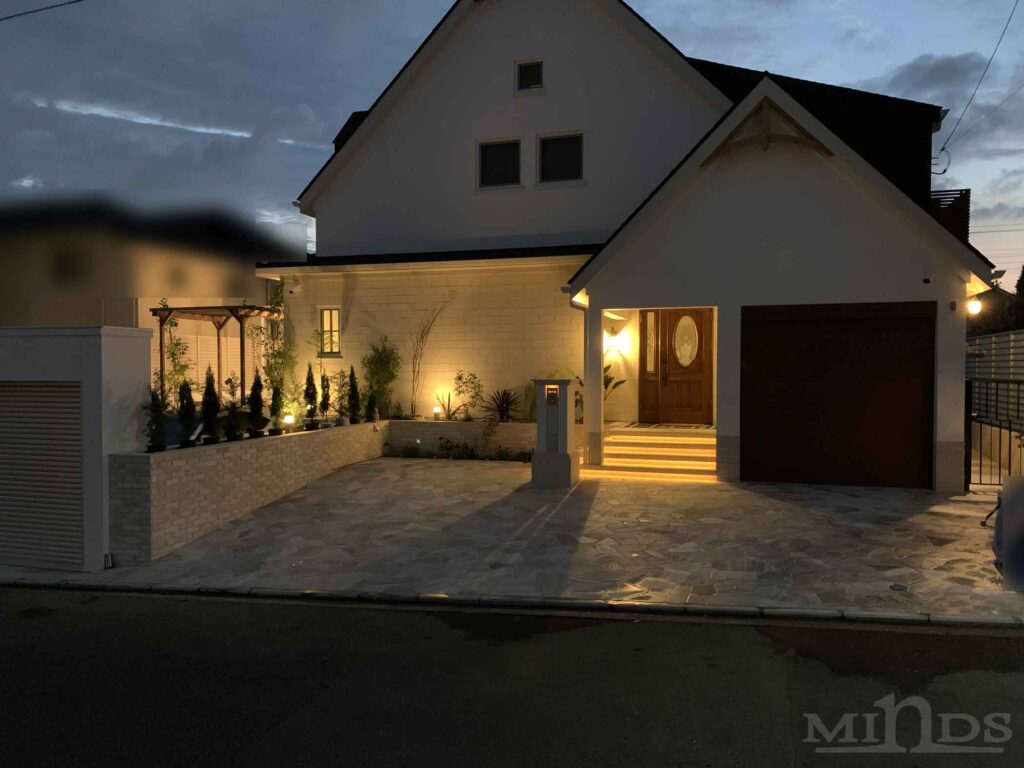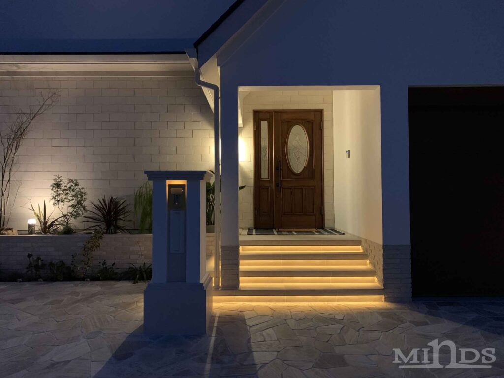 建物と同じ白を基調とし地中海をイメージしたホワイト系の石張りで仕上げました。