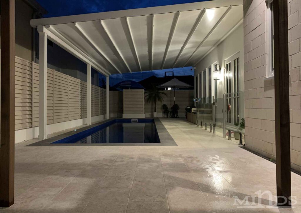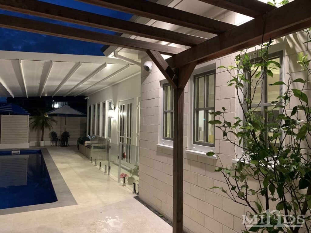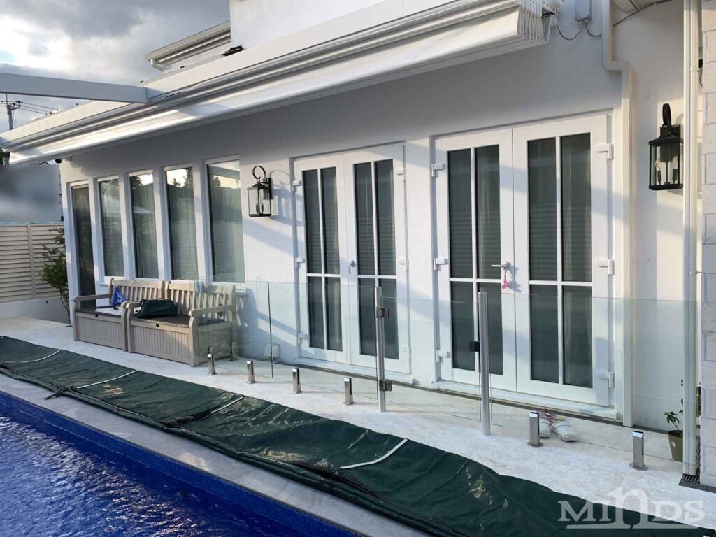 プライベートガレージ奥に設置されたプールも白を基調とした素敵なリゾート空間となりました。